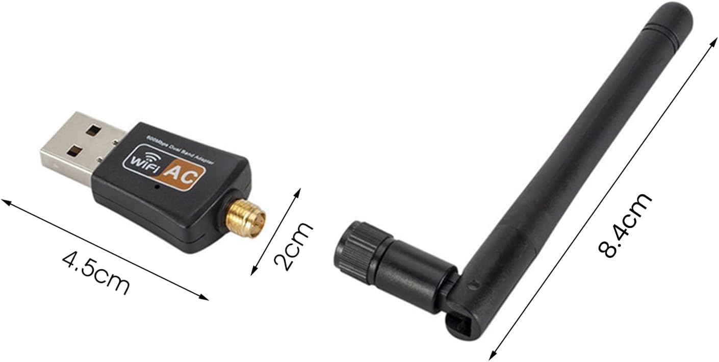 - The length of the usb adapter is 4.5cm, the width is 2cm, and the height is 1.2cm. the length of the antenna is 10.8cm.
